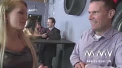 A bela Rachel Evans chega acompanhada de seus amigos em um bar e oferece um show muito legal a um cliente lambendo a buceta de uma mulher!