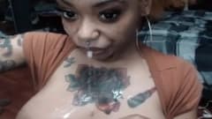 Esta bela amadors preta deixa voce admirar seus belos seios enquanto ela suga o pau preto grande de seu namorado que vai largar todo o esperma!