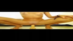 Ela coloca o dildo no chão e se senta sobre ele para penetrar a boceta e ter prazer numa masturbação gostosa e partilha na net.