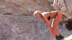 Esse cara tira fotos de belas bundas na praia quando uma loira oferece-se para sugar sua rola e deixa-o sodomisa-la profundamente.
