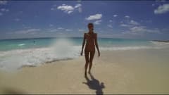 ![Ellie caminha nua na praia com um bastão de selfie Ellie caminha nua na praia com um bastão de selfie]()