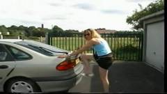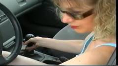 Esta Milf com muito tesão simula una masturbação com a caixa de velocidade do carro antes de ir para a rua se exibir!