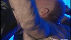 ![Loiro jovem dominado por dois caras polícias em couro Loiro jovem dominado por dois caras polícias em couro]()