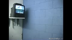Este preto suga os dois grandes paus pretos de seus companheiros numa cela antes de reveber uma sodomia bem profunda.