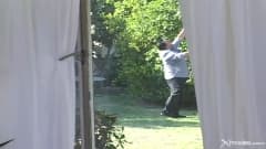 Esta jovem loira oferece-se a um negro musculado gostoso que faz com que ela chupa seu grande pau duro antes de fode-la profundamente.