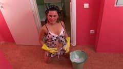 Empregada de limpeza se masturba com dildo