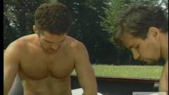O belo Beau Saxon suga o grande penis duro de Brad Eriksen enquanto é fodido profundamente pelo pau duro Brad Hunt.