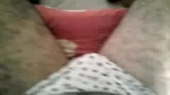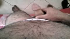 O cara peludo gordo tira a sua grande rola de suas calças e começa a se masturbar e vai colocando ao mesmo tempo os dedos na bunda, gemendo de prazer.