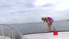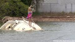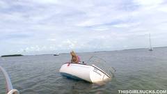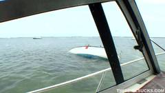 Esta jovem falhou com seu barco no meio do rio e decide agradecer seu salvador com um bom boquete no convés de seu barco.