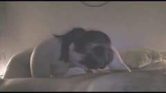 Esta linda morena peituda suga a grande rola bem espessa do seu namorado que endurece rapidamente com sua experiencia em boquete!