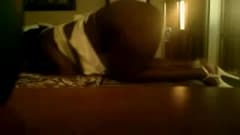 Esta bela negra coloca sua bunda para trás na posição estilo cachorrinho enquanto seu homem enfia a cara na bunda dela para lamber sua vagina.