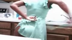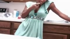 Em seu pequeno e bonito vestido azul ultra curto, esta linda Latina vai endurecer suas rola enquanto nos mostra seus seios e bunda.