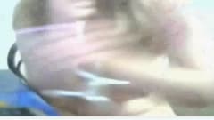 Esta deliciosa loira mostra seus peitos grandes na webcam enauqnto ela acaricia-se antes de gemer de prazer por se masturbar.