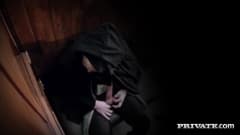 A bela loira Rebecca Moore vai se confessar na igreja com o padre e vai ter uma bela surpresa ao ter uma rola saindo pelo buraco do confessionario.