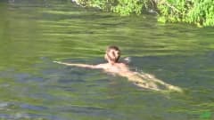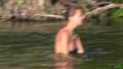 Esta bela jovem vai tirar a roupa para poder nadar no lago nua e desfrutar da natureza. Voce vai gostar de assistir este video.