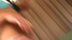 Esta jovem morena muito bonita deixa voce admirar suas belas mamas enquanto ela esta se masturbando com um vibrador.
