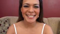 Esta bela Latina nos deixa admirar sua bunda grande e seios firmes pequenos, enquanto ela geme de prazer masturbando sua buceta.