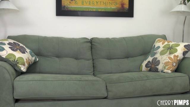 A bela loira Aaliyah Love deixa você admirar sua bunda gostosa e mamas firmes pequenas, enquanto ela se masturba no sofá.