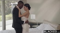 A bela morena Sophia Leone suga completamente esta rola preta grande que distorce a boca dela antes de gemer de prazer quando ele a fode.
