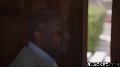 Pela primeira vez, a bela loira Eliza Jane suga um grande pau preto grosso e geme de prazer enquanto ele transa com ela vigorosamente.