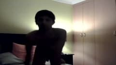 Esse cara instala-se confortavelmente na cama em frente a webcam e começa a masturbar sua rola ate a ejaculação final.