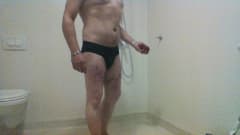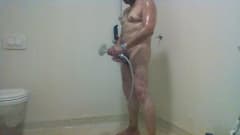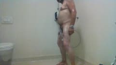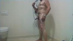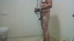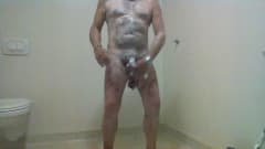 Venha espiar este garanhao enquanto ele toma um banho e ele acaricia seu grande pau duro enquanto esta a ser filmado por uma câmera.