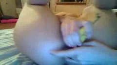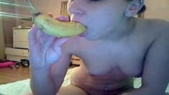 Esta bela morena goza ao enfiar uma banana em sua boceta molhada só para você na webcam. Uma masturbaçao especial a nao perder!