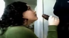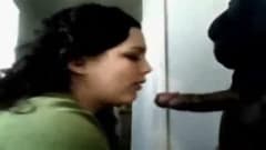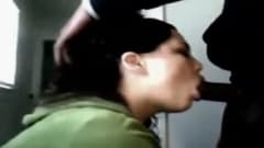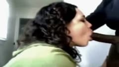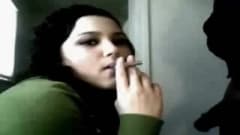 Esta morena bonita suga um bom e longo pau preto, enquanto fuma seu cigarro. Esse cara acaba por deixar a sua porra no rosto dela!