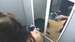 esta linda morena está inteiramente nua em um provador onde você vai poder admirar suas grandes mamas gostosas!