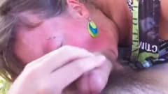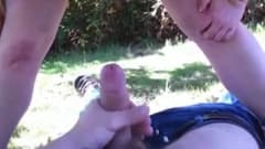 Durante uma caminhada na mata esse cara tem uma vontade repentina de ser chupado e sua namorada engole o seu grande pau para um bom boquete!