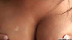 Esta transexual morena adora chupar a rola de Mike. Mike é um cara que adora enfiar a rola no meios das mamas falsas para se excitar