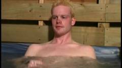 Este homem ruivo entra no jacuzzi e, em seguida, se masturba na água até ejacular dentro! Uma punheta muito gostosa!