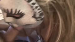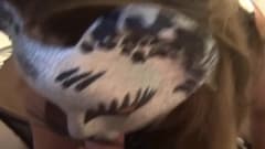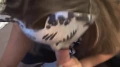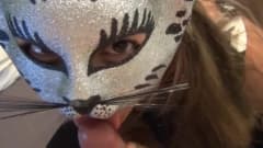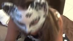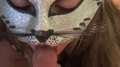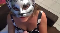 Uma jovem mulher com uma máscara, faz um bom boquete ao seu amigo que deve estar a apreciar ainda mais do que nos!