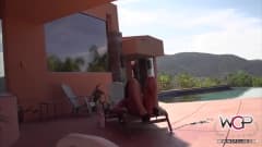 Esta beleza anda completamente excitada a beira da piscina e pede a um preto para que venha refrescar-la. Rapidamente ela o leva para a casa.