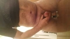 Este cara gordinho está feliz com sua rola na mão mostrando o que sabe fazer com ela quando se encontra sozinho.