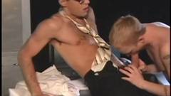 Estes dois gay começam com uma boa sessao de sexo oral, mas o loiro coloco o dedo no cu do moreno para iniciar uma sodomia profunda !!!