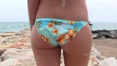 Esta moça esta caminhando na praia. É doce, suave e existente. A parte real da felicidade. Depois ela vai para o chuveiro