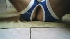 Vais poder ver o rabo deste homem que está vestido com um jockstrap ! Ele enfia coisas no rabo e vais poder ver o resultado aqui no Boafoda.