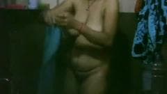 Esta mulher negra está no duche acariciando seu corpo quente e seios enormes antes de se vestir novamente e ela não sabe que está sendo observada!