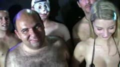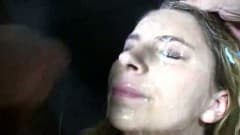 um bukkake maravilhoso nessa loira deliciosa de seio grandes ... A falta não ver nada por causa dessa enorme dose de porra no rosto.