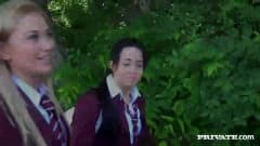 Taissia e Lindsay passam um ótimo momento sendo sodomizadas juntas na floresta atrás da escola em seus uniformes!
