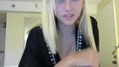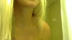 Loira gostosa nos mostra seus seios quentes e acaricia-os na frente da câmera para nos animar, não se esqueça de ver esta safada!