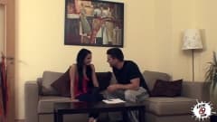 Kerry é uma morena que não pode esperar para desfrutar de Toni Ribas hoje e ela vai aproveitar-se ao máximo dele enquanto eles fodem no sofá
