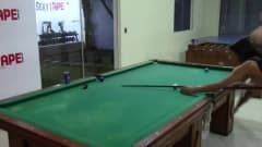 Eles queriam foder em algum lugar diferente e ficam no topo da mesa de bilhar e desfruta de uma sessão quente na frente da câmera!