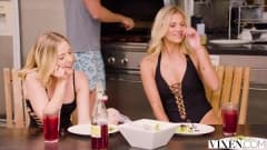 O namorado desta loirinha tem ciumes e briga quando vê que ela se aproxima demasiado do outro ! Vai-se embora e deixa este trio divertir-se !