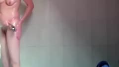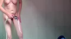 Ela adora estar no chuveiro ficando animada porque ela sabe que ela pode dar-se prazer após algumas carícias suaves!