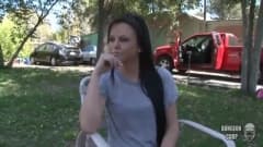 Esta morena será convencida pela sua amiga a ser amarrada no sofá e depois é surpreendida quando aparece um homem para a sodomizar.