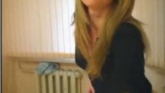 Uma loira começa a se despir na frente da câmera e isso nos excita muito, pois ela sabe que é uma provocadora que quer agradar