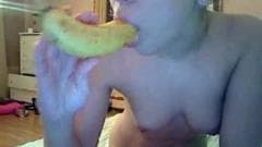Ela adora se masturbar com coisas diferentes e é por isso que vemos ela usando uma banana e uma cenoura na frente da câmera aqui!
