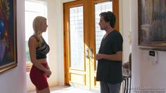 Esta bela Milf ficou impressionada com o namorado da sua filha e aproveita que ela nao esta em casa para transar com ele na sala.